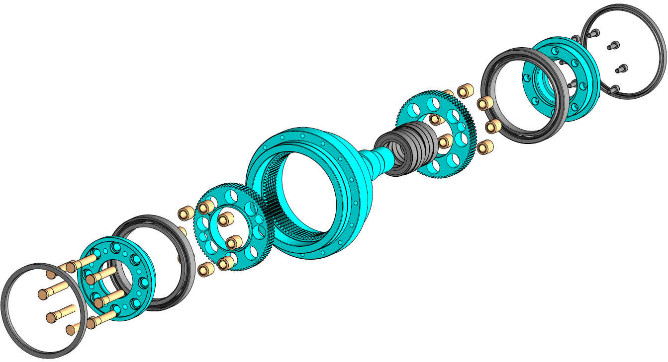 The starting point of the project was the original metal version of robotic ultra-precision drive, developed by the company Podkrižnik d.o.o. (also as part of past projects such as Gostop, SGU…). The drive operates according to the principle of eccentric cycloidal drive systems. It is mostly made of steel, but within the framework of this project, we want to make a hybrid version that will also contain polymer material. The goal is to reduce mass for about 15-25 %, while keeping the best possible performance of the drive system.